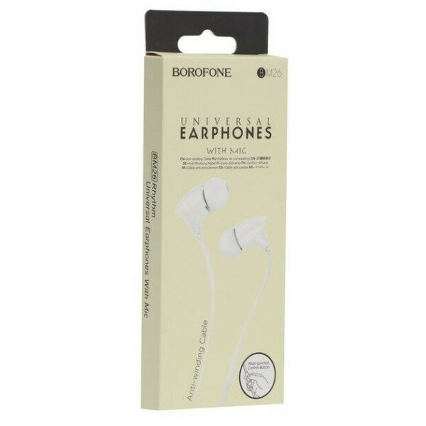 Купить Borofone Наушники Borofone BM26 Rhythm, вакуумные, микрофон, Jack 3.5 мм, кабель 1.2 м, белые