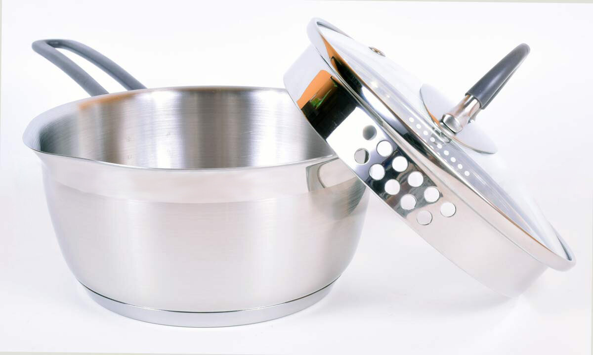 | Плюсы: | Нержавейка, крышка с пароотводом, есть сливы, ручка ковша и ручка крышки не нагреваются |