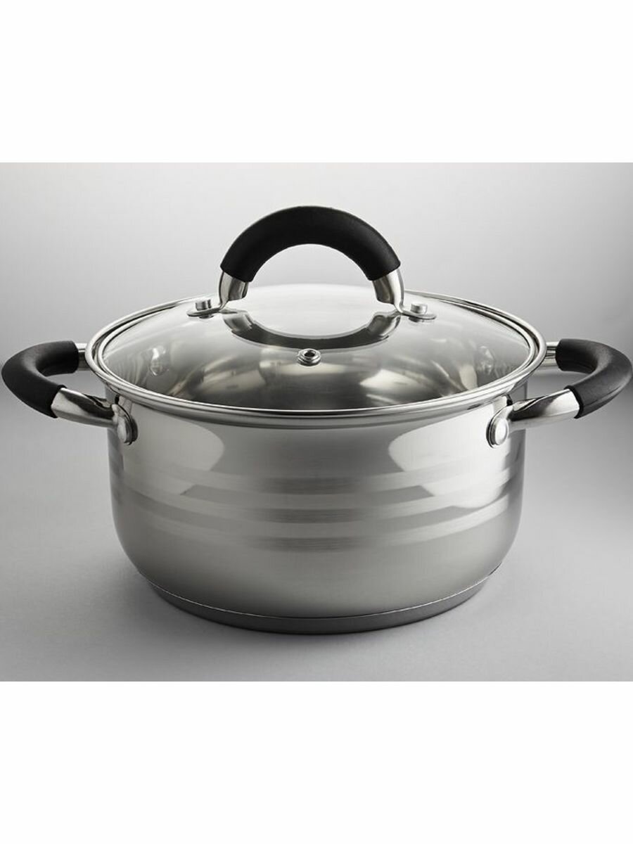 | Плюсы: | Недорогая кастрюля с такими параметрами. Ручки кастрюли и крышки обтянуты пластиком, очень удобно снимать с огня горячую кастрюлю. Дно многослойное, это хорошо. |