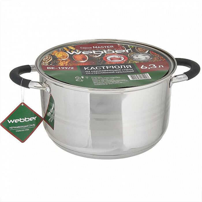WEBBER BE-355/2 Кастрюля из нержавеющей стали со стеклянной крышкой 6.5л.
