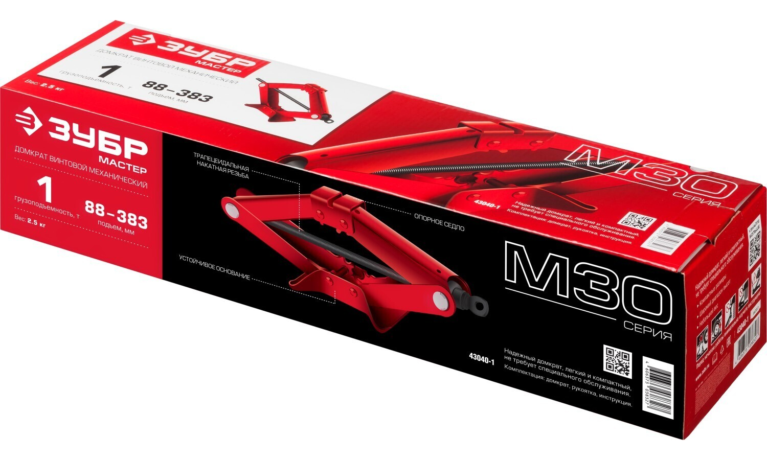 Домкрат Зубр 43040-1 Мастер М3 винтовой, механический, тип "ромб", 1т, 88-383мм .