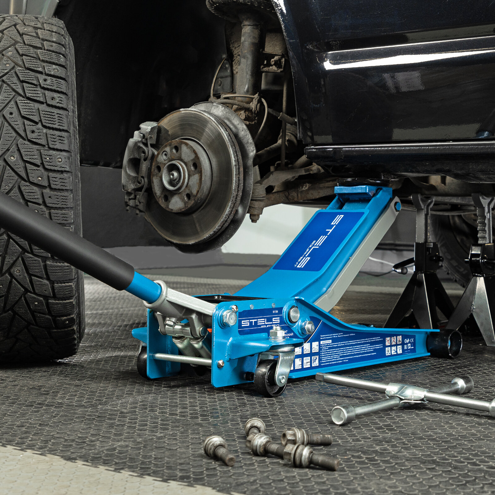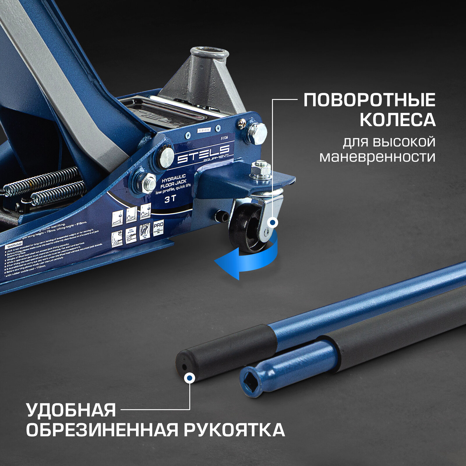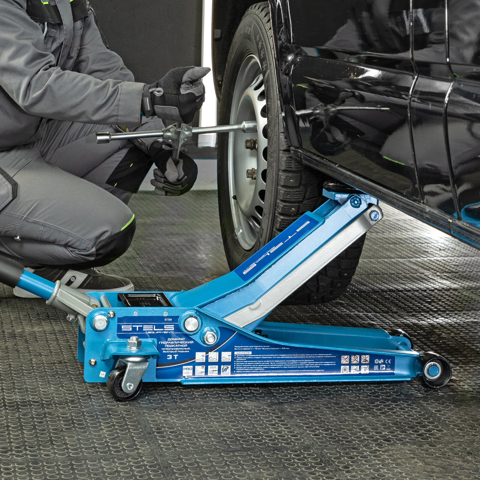 Домкрат подкатной гидравлический Stels 51136 (3 т) синий