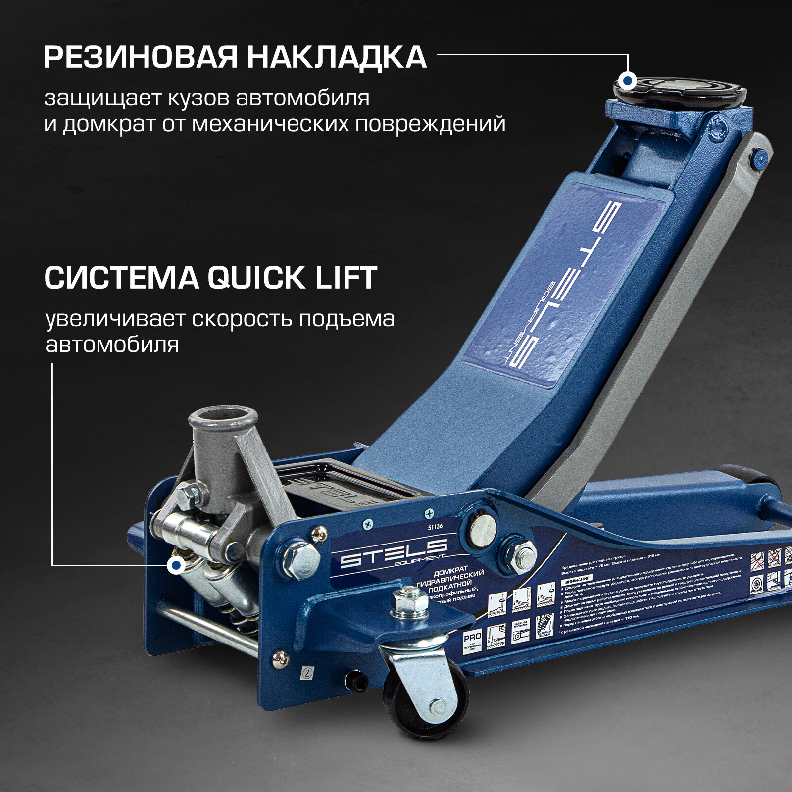Домкрат подкатной STELS LOW PROFILE QUICK LIFT быстрый подъем (3,0 т - 75/515 мм) 51136