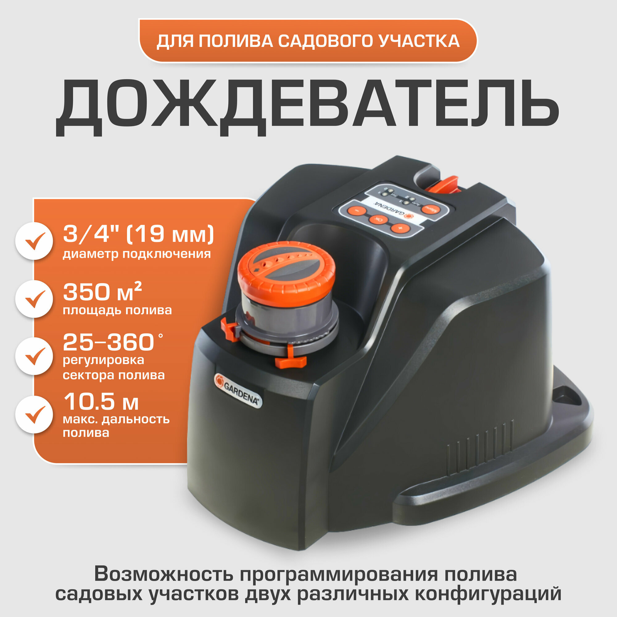 | Дополнительная информация | сектор полива устанавливается в диапазоне 25-360° с помощью вращающихся регуляторов; дальность полива программируется в диапазоне 2,5-9 м при рабочем давлении 2 бар и 10,5 м при рабочем давлении 4 бар с возможностью сохранения настроек; предусмотрена возможность программирования двух различных контура полива, в зависимости от программы можно сохранять до 50 точек траектории полива |