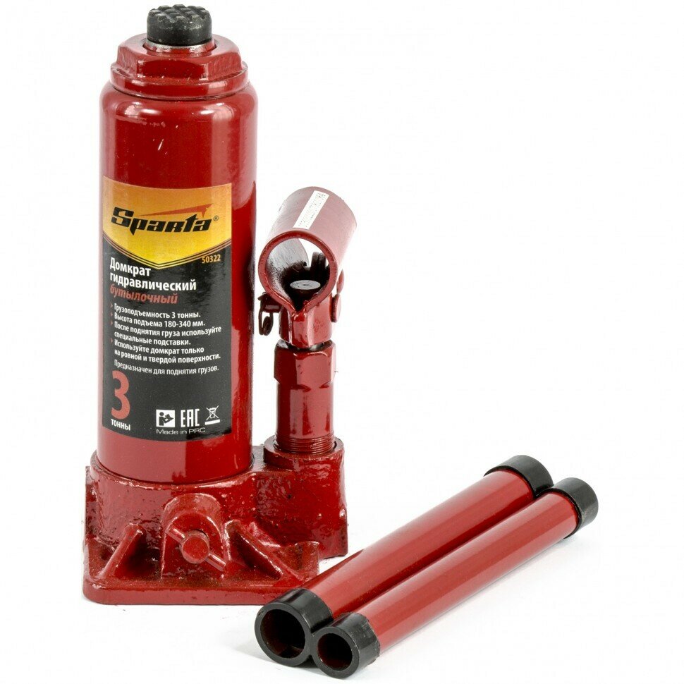 Домкрат гидравлический бутылочный, 3т, h подъема 180-340 мм Sparta (50322)