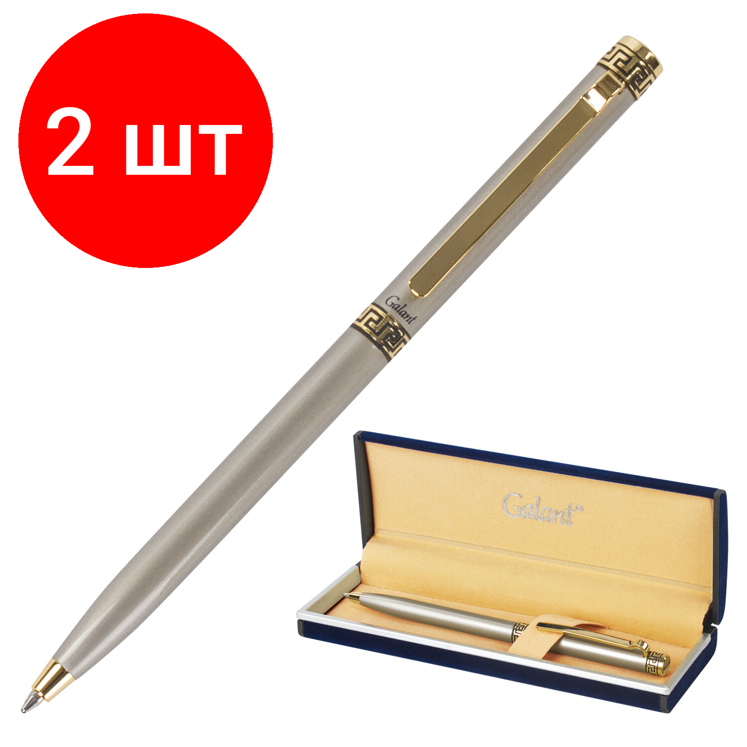 Купить Комплект 2 шт, Ручка подарочная шариковая GALANT "Brigitte", тонкий корпус, серебристый, золотистые детали, пишущий узел 0.7 мм, синяя, 141009