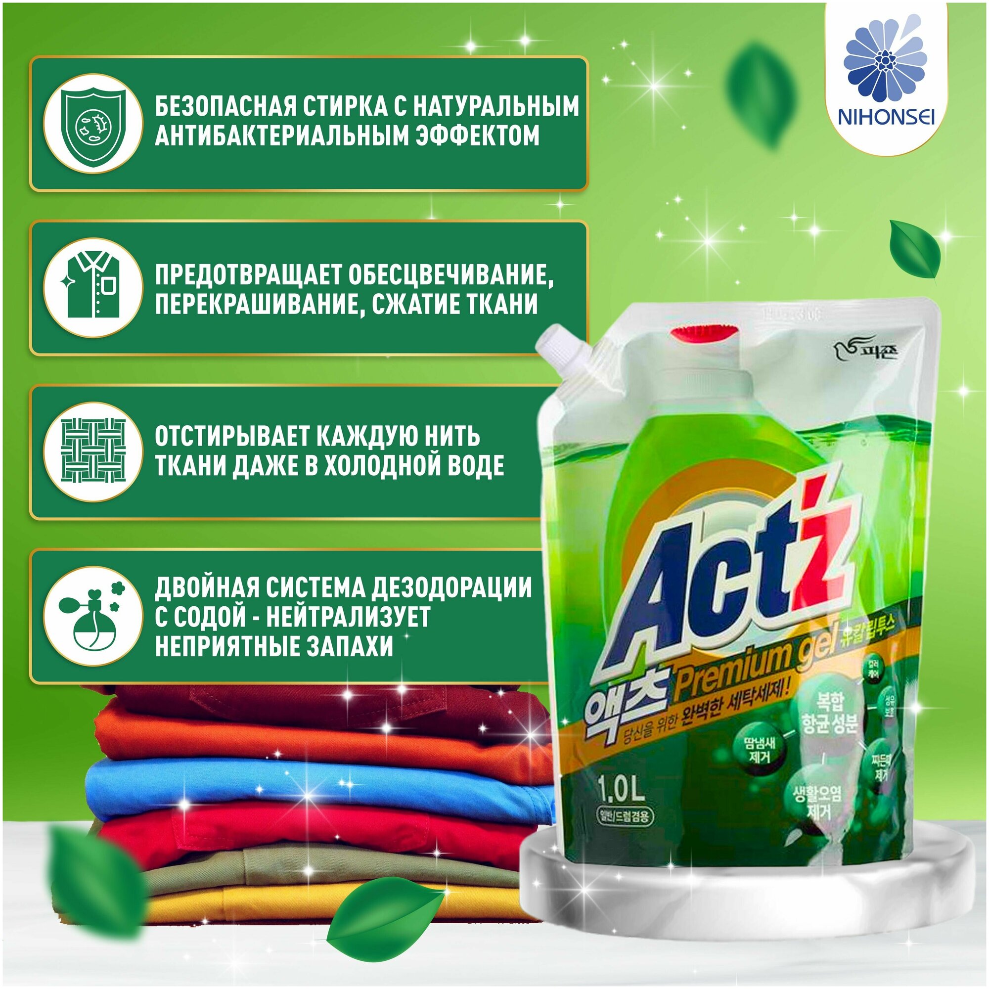 Гель для стирки белья Pigeon 1000 мл, концентрированный для стиральных машин любого типа, Корея Act'Z Premium Gel, Жидкий порошок