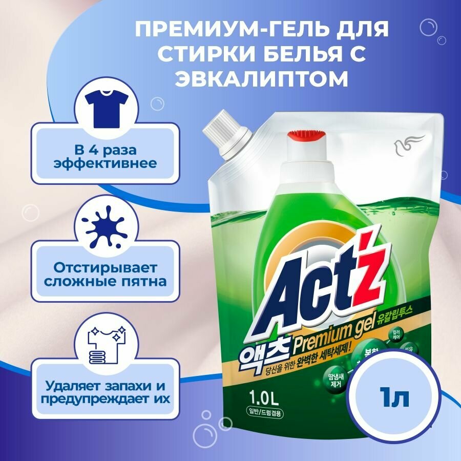 PIGEON Гель для стирки белья Actz Premium Gel Eucalyptus, 1000 мл (мягкая упаковка)