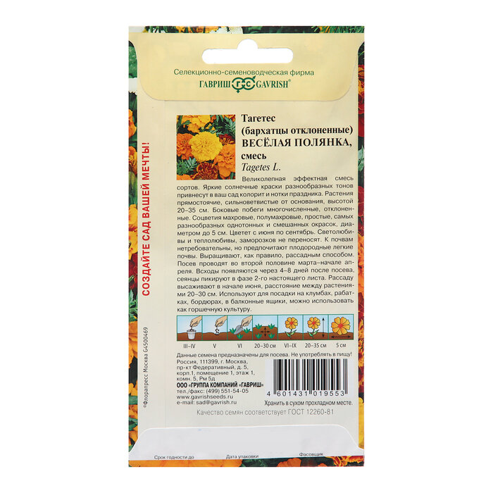 СохранитьСемена Гавриш Бархатцы отклоненные (тагетес) Веселая полянка 0,3 г интересное: