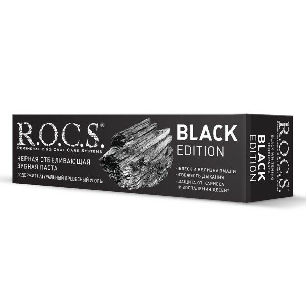 Купить Рокс Зубная паста R.O.C.S" BLACK EDITION Черная отбеливающая", 74 гр