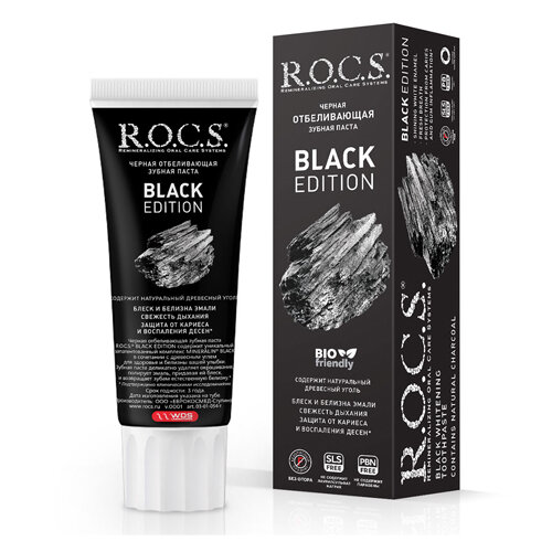 R.O.C.S. зубные пасты Зубная паста Black Edition Черная отбеливающая, 74 гр