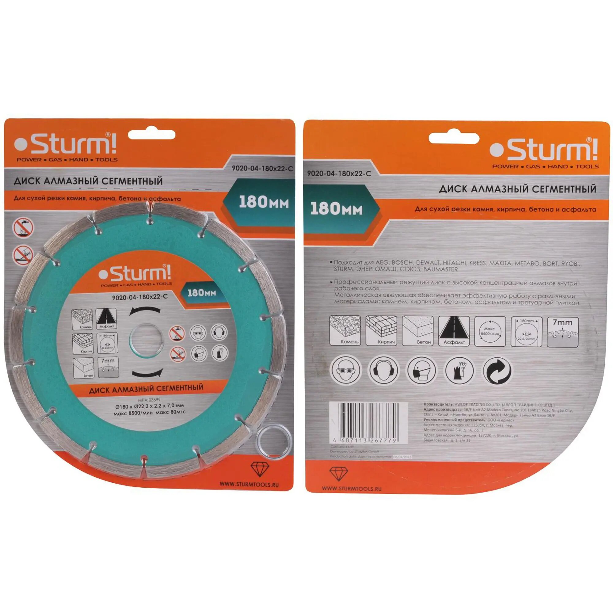 Диск отрезной алмазный Sturm "9020-04-180x22-C" сегментный, сухая резка, 180 x 22 мм