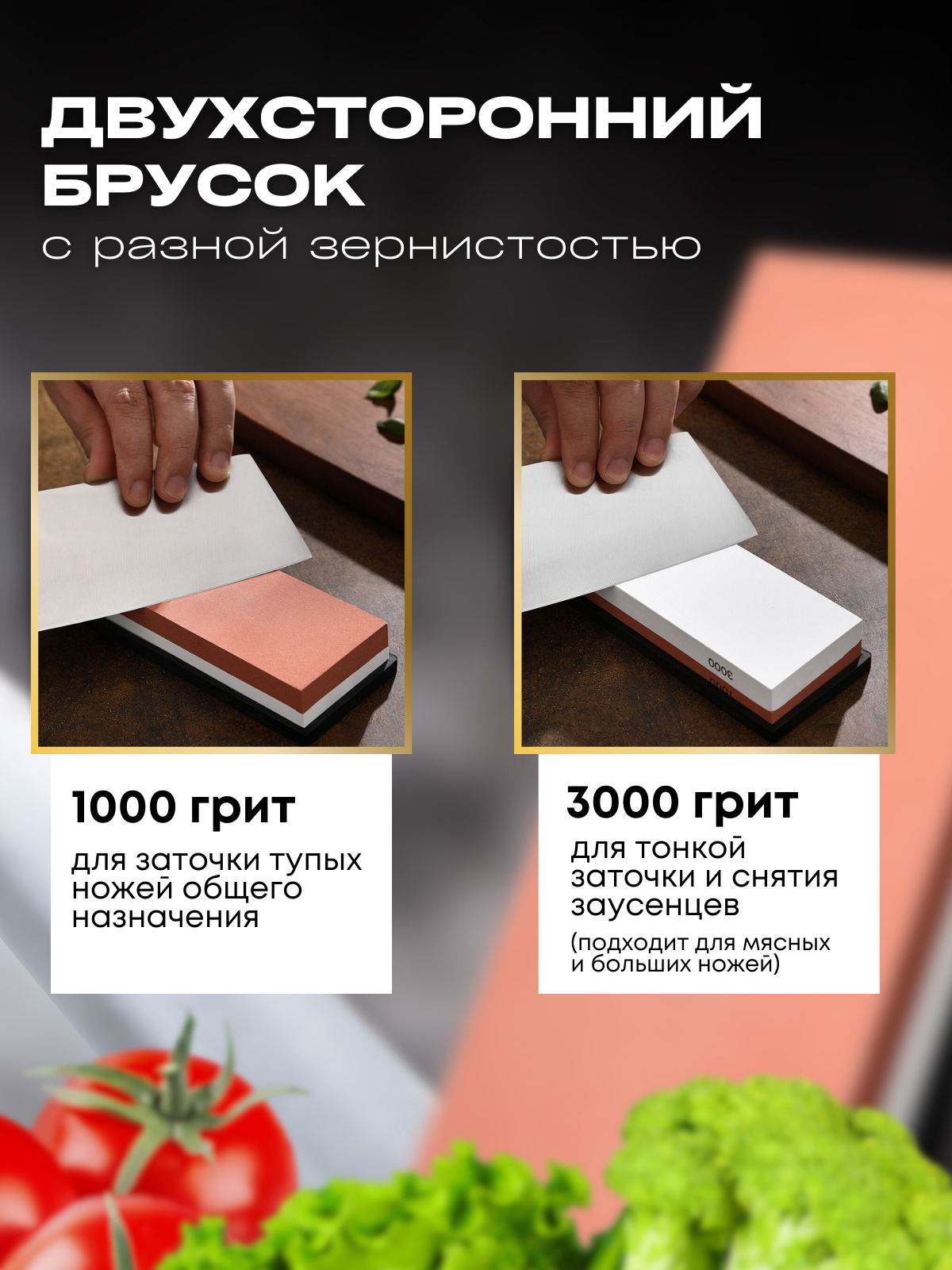 | Плюсы: | Тяжелый, гладкий, хорошее сочетание зернистости, есть резиновая подкладка, адекватная цена, отлично подходит для заточки кухонных ножей |