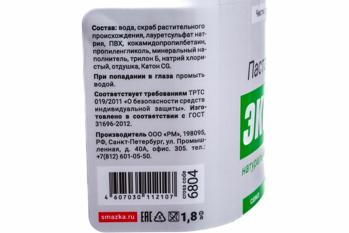 СохранитьПаста для очистки рук Эко Чистик, 1,8 л банка, ВМПАВТО, очиститель рук интересное: