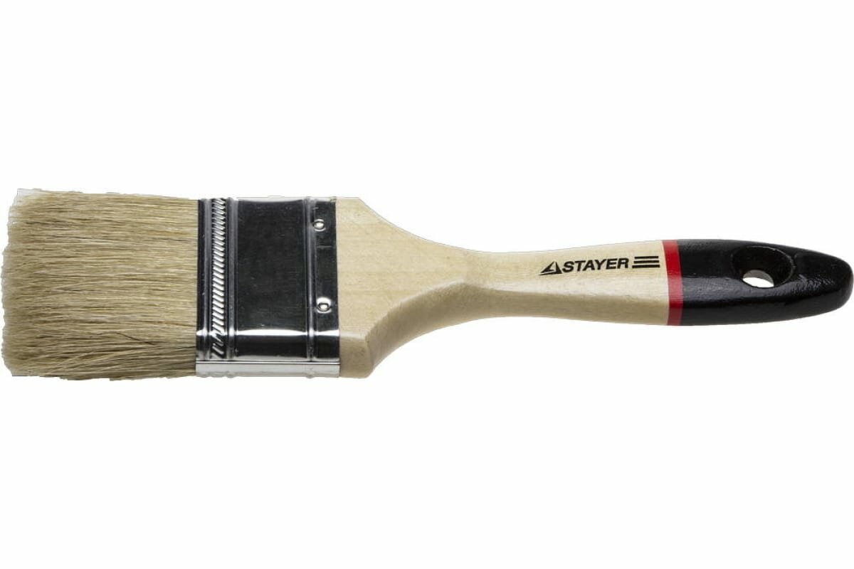 Купить STAYER UNIVERSAL - EURO, 75 мм, 3″, светлая натуральная щетина, деревянная ручка, все виды ЛКМ, плоская кисть (0102-075)