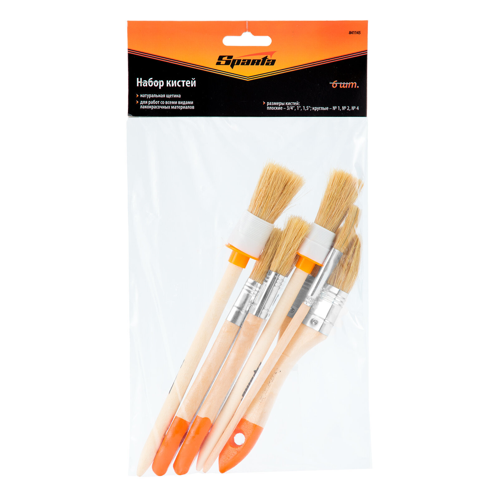Набор кистей, 6 шт.(плоские 3/4", 1", 1/5"; круглые №1,№2, №4.) Sparta [841145]