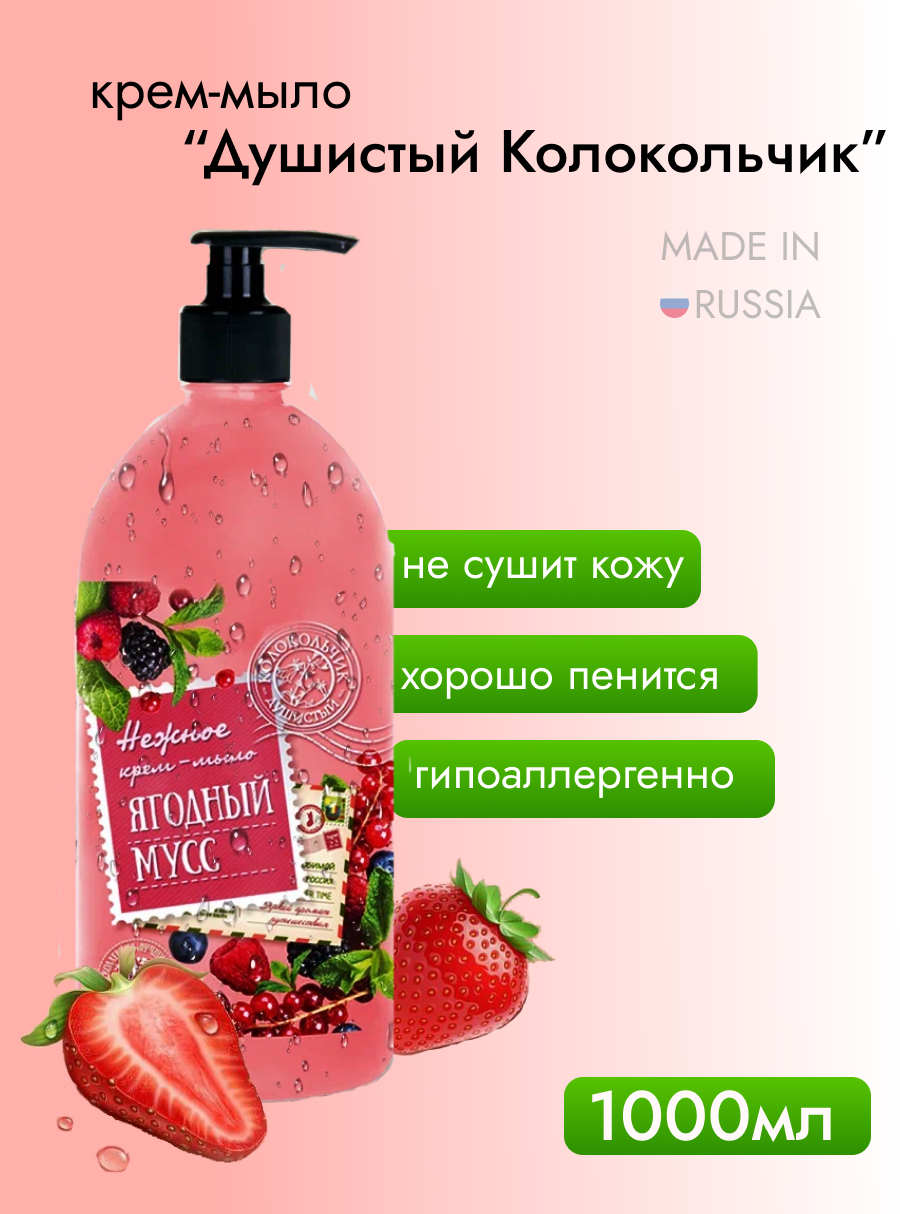 Купить "Душистый Колокольчик Ягодный Мусс" - жидкое крем-мыло объемом 1 литр