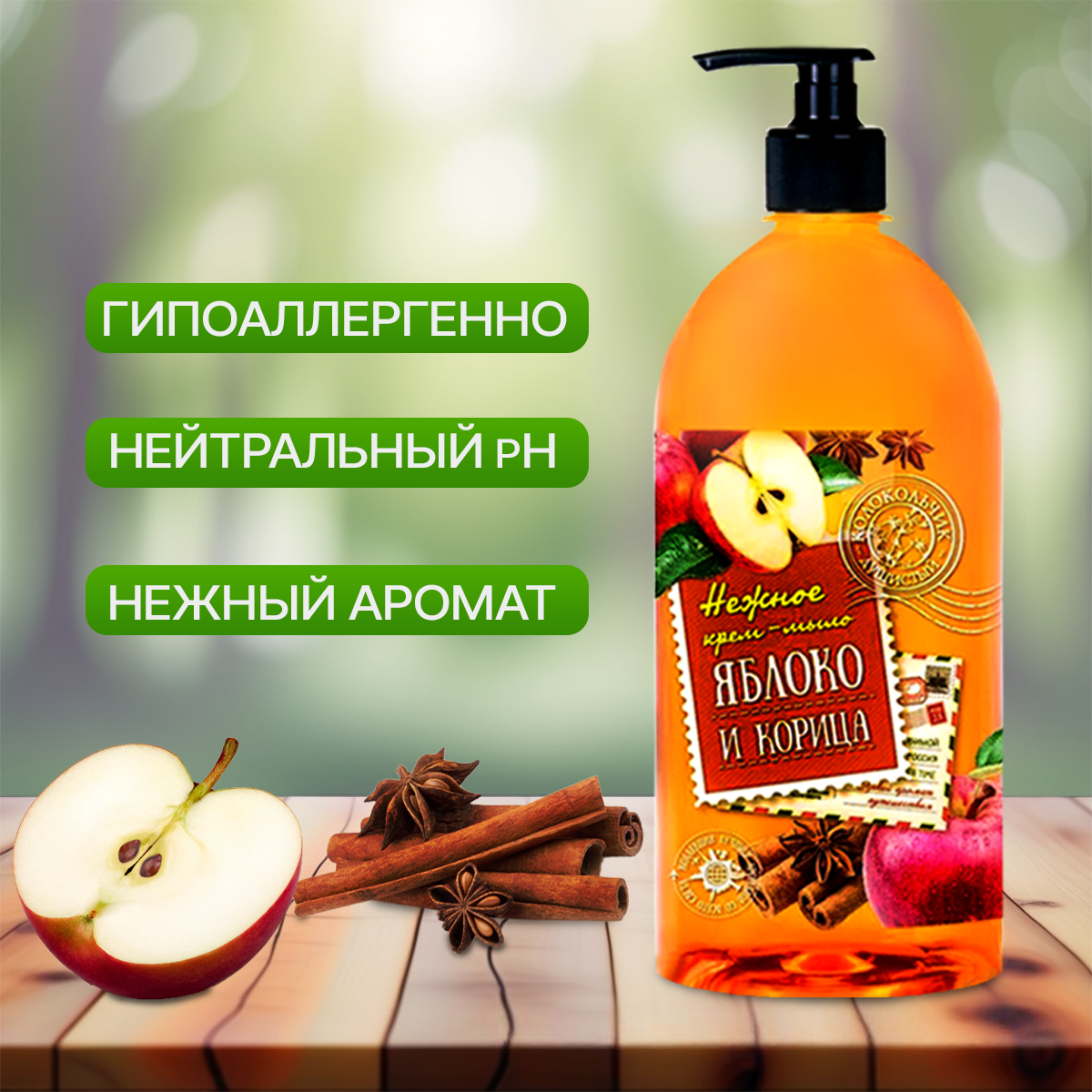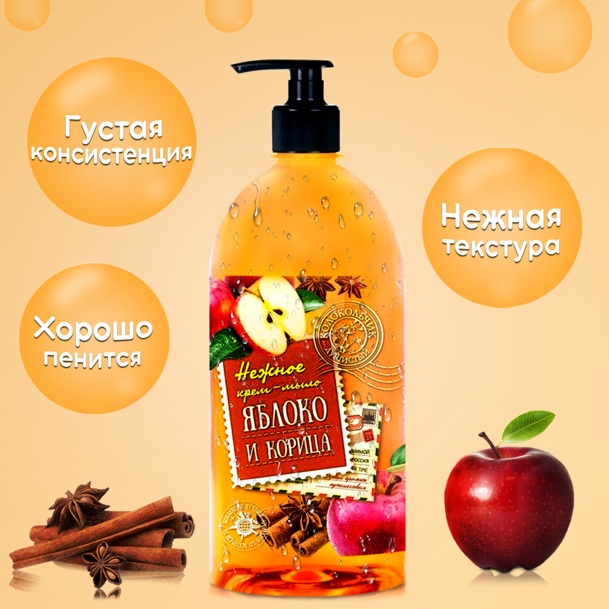 Сохранить"Душистый Колокольчик Яблоко и корица" - жидкое крем-мыло объемом 1 литр интересное: