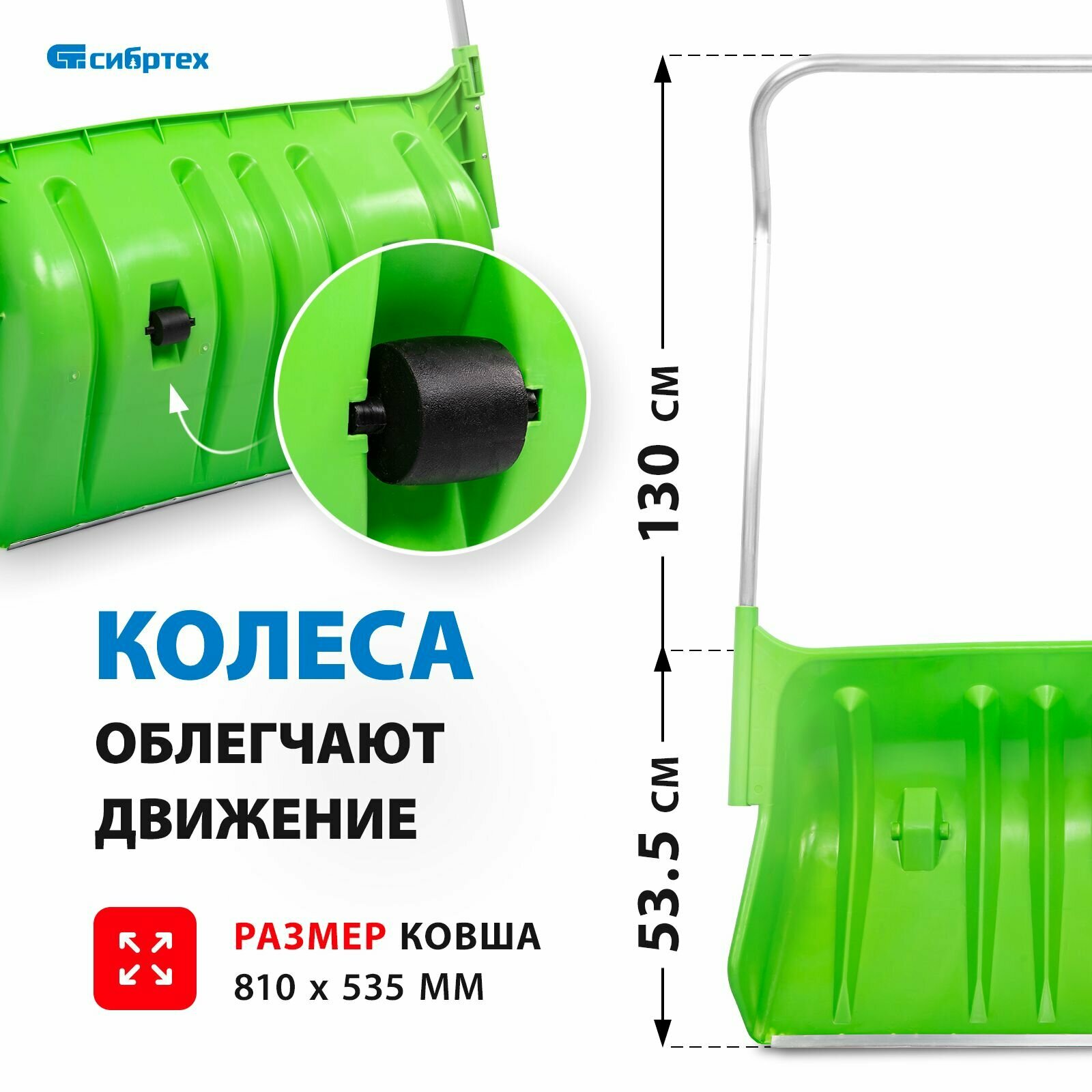 Движок для уборки снега пластиковый Сибртех 810х535х1300 мм, алюминиевая рукоятка 61499