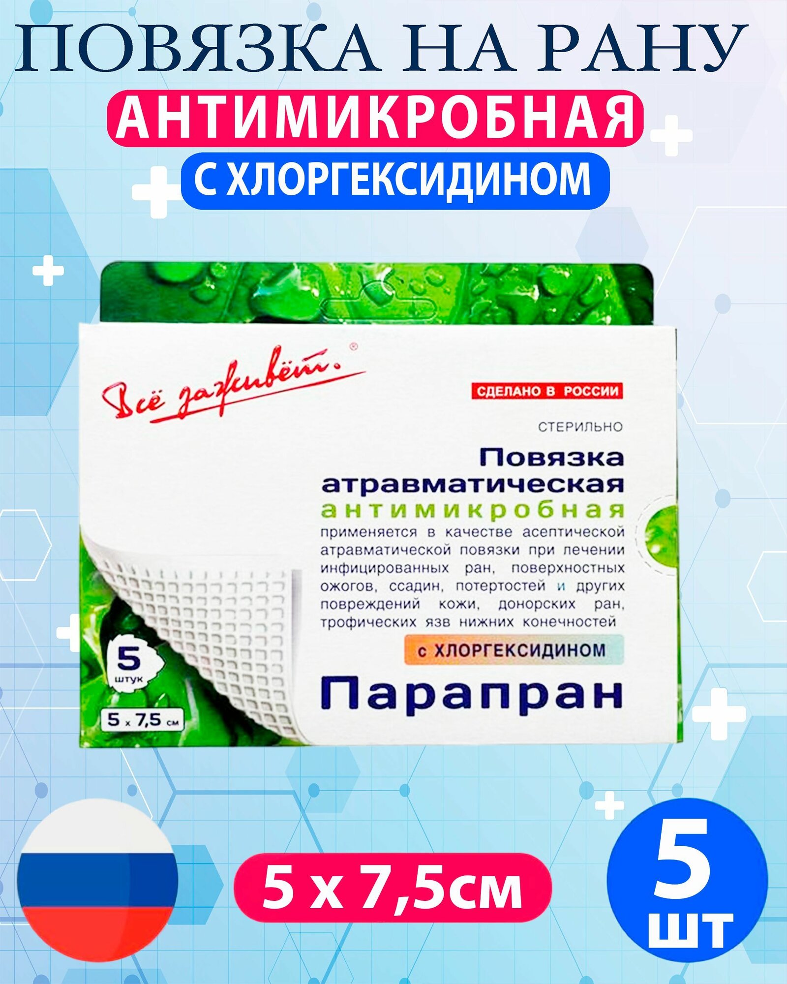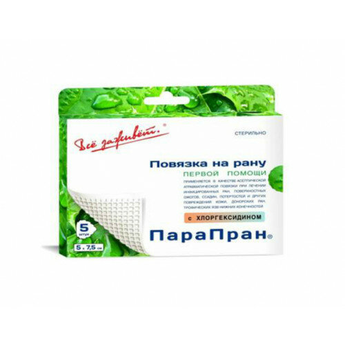 ПараПран с хлоргексидином - раневая повязка первой помощи, 5x7,5 см (5 шт.)