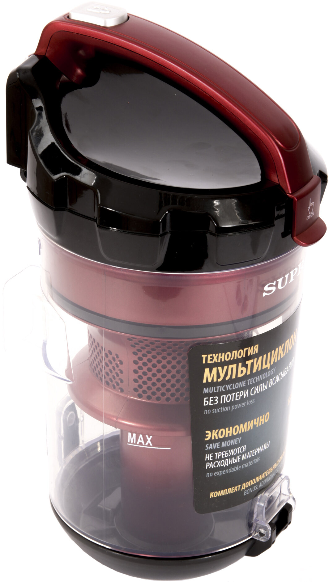Пылесос Supra VCS-2430 всасывания-420 Вт, сухая, контейнер, 3.5л, рег. мощности на корпусе, красный