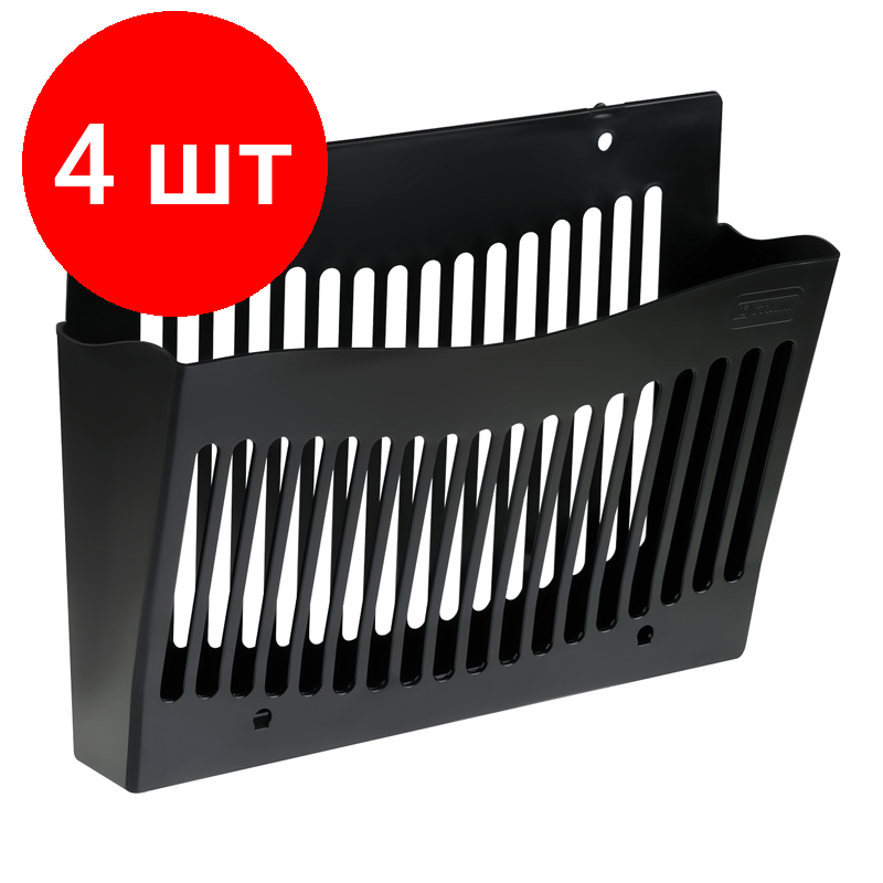 Настенный лоток для бумаг Стамм, 26 х 10 х 34 см, пластиковый, черный (комплект из 4 шт)
