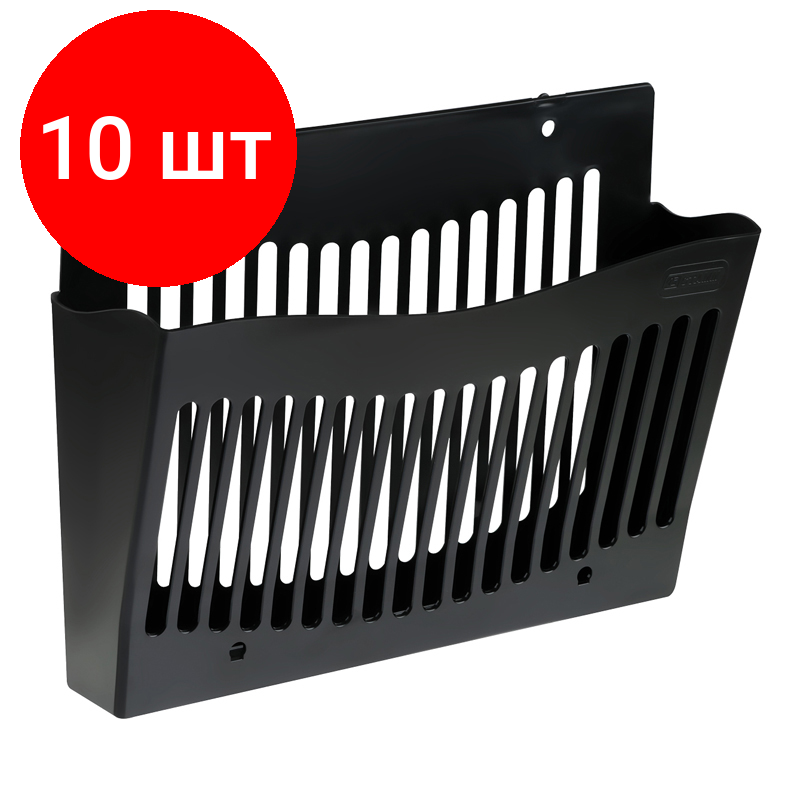 Настенный лоток для бумаг Стамм, 26 х 10 х 34 см, пластиковый, черный (комплект из 4 шт)