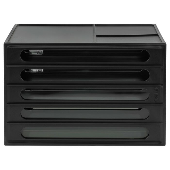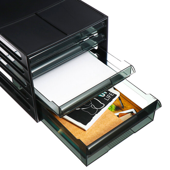 Бокс с выдвижными лотками закрытый Стамм 4 лотка черный/прозрачный (формат A4)