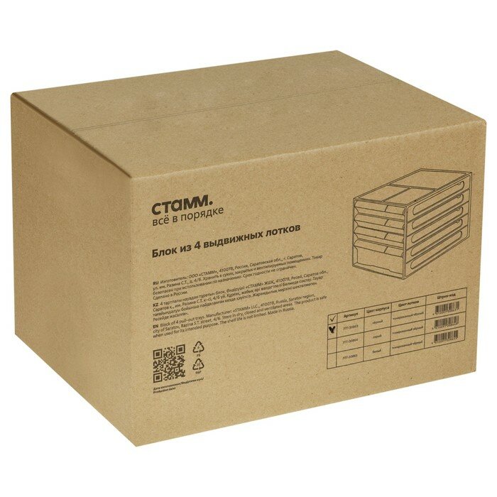 Бокс с выдвижными лотками закрытый Стамм 4 лотка серый/прозрачный формат A4, 930932