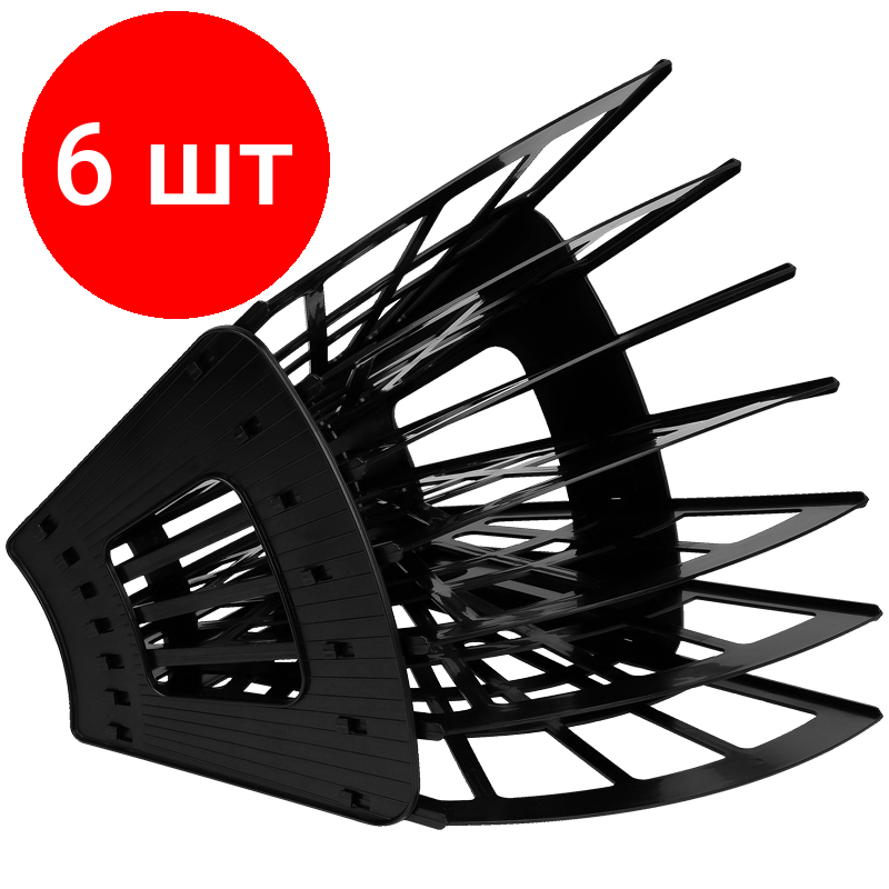 Купить Комплект 6 шт, Лоток для бумаг веерный СТАММ "Эконом", 7-ми секционный, черный