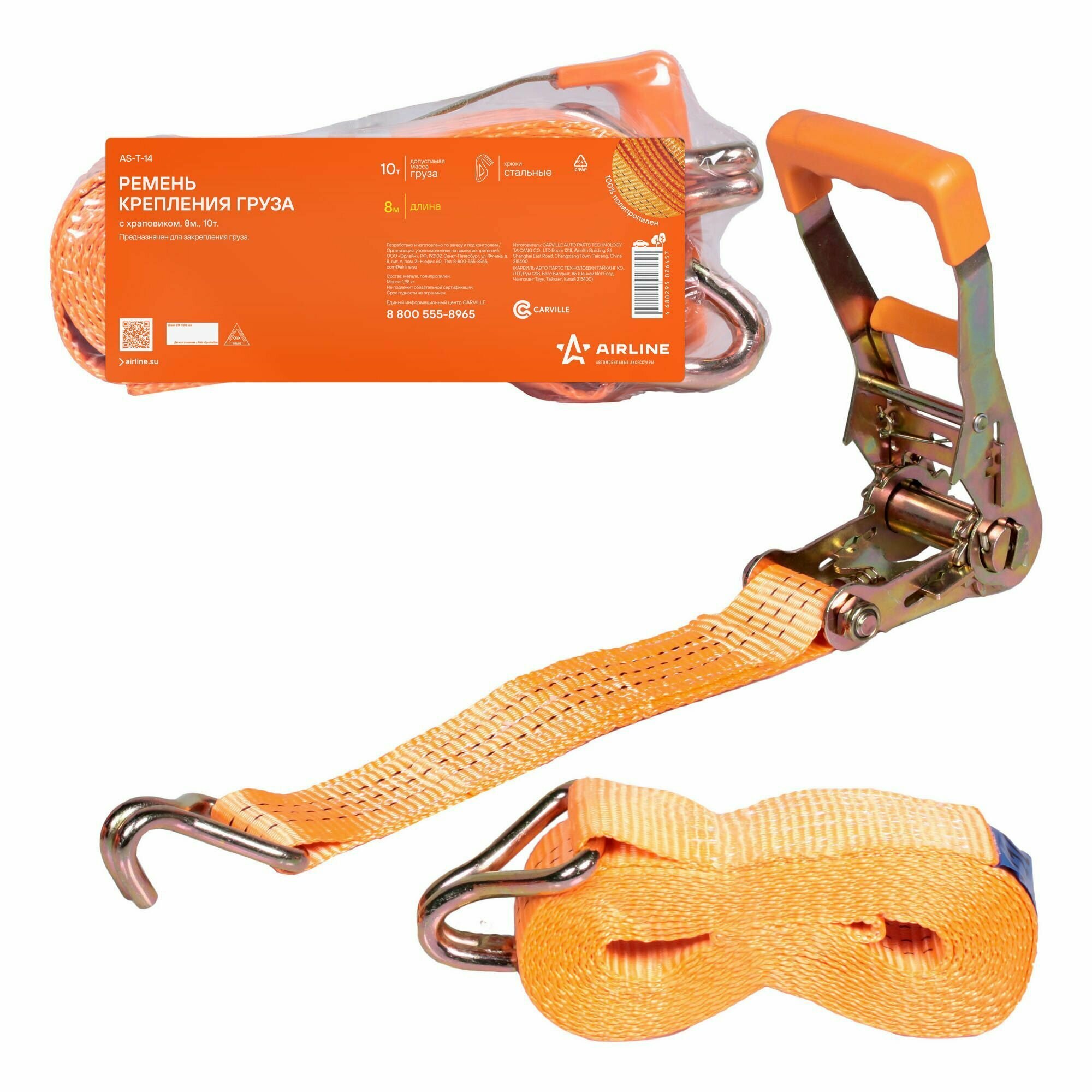 Стяжка груза (8 м) 10 т "AIRLINE" (с храповиком) AIRLINE AS-T-14