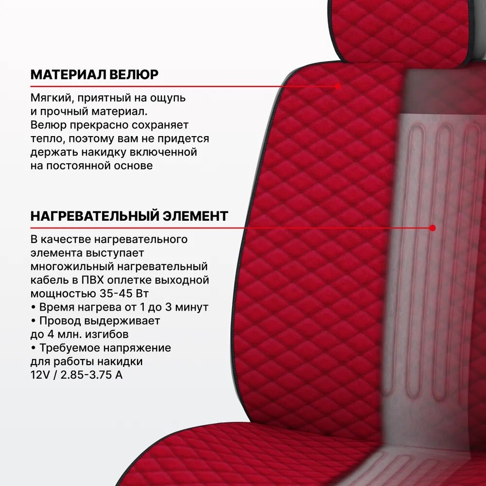 Накидка на сиденье с подогревом FERVOR красный 2х режим (1шт) PSV 132251