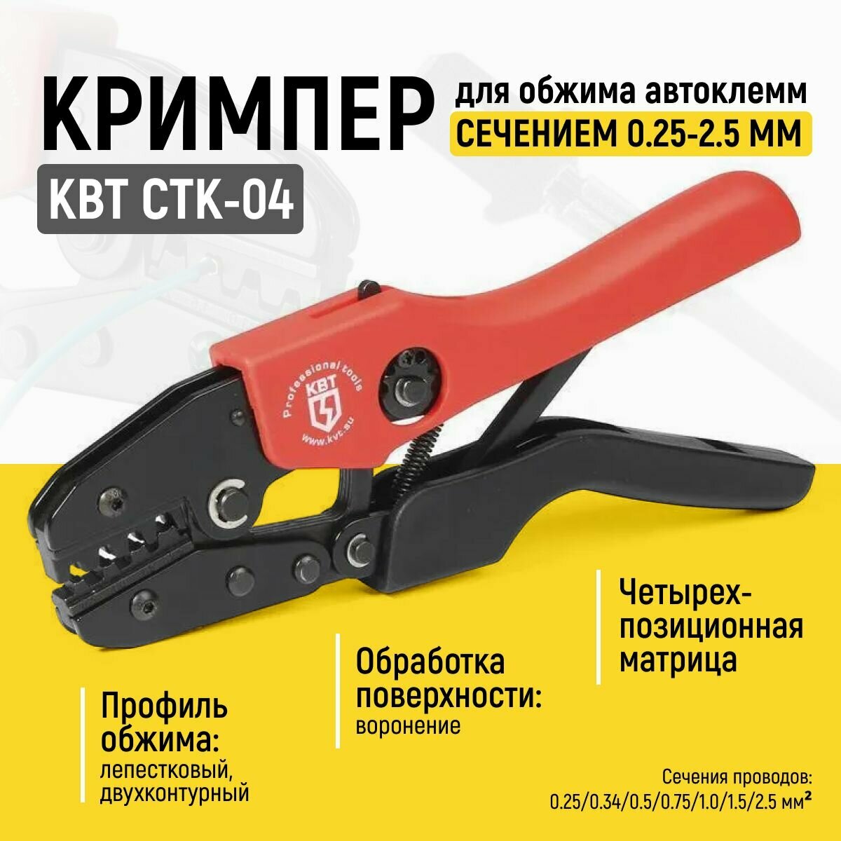 КВТ CTK-04 Кримпер для опрессовки неизолированных разъемов и наконечников (автоклемм)