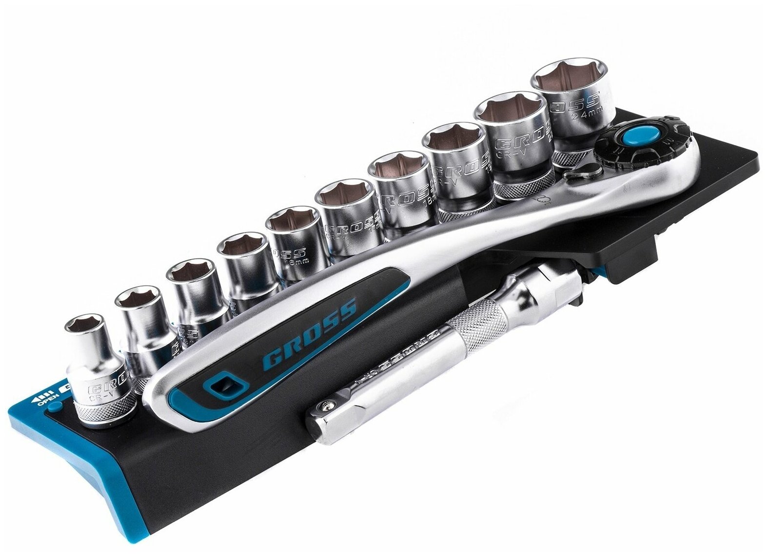 Набор торцевых головок, трещотка 120 зубьев, 12 предметов, 1/2", CrV Gross