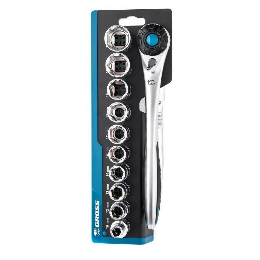 Набор торцевых головок, трещотка 120 зубьев, 12 предметов GROSS 14138