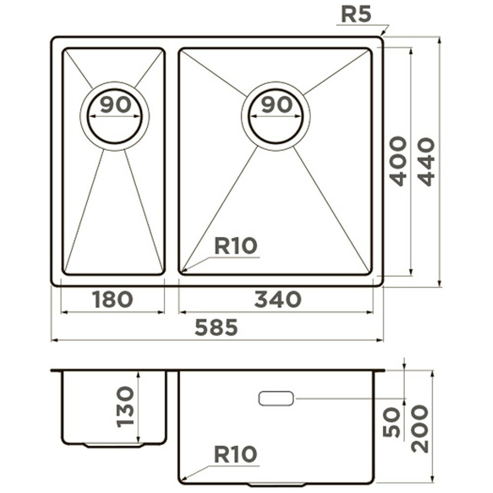 Врезная кухонная мойка 58.5 см, OMOIKIRI Taki 58-2-U/IF IN-R, нержавеющая сталь