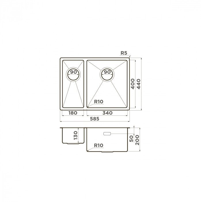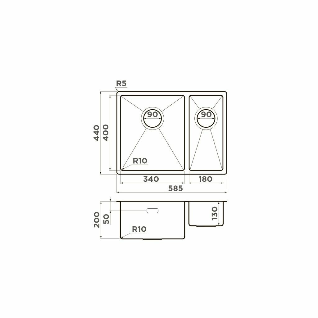 Кухонная мойка OMOIKIRI Taki 58-2-U/IF-IN-R 58,5х44см нерж.сталь/нержавеющая сталь