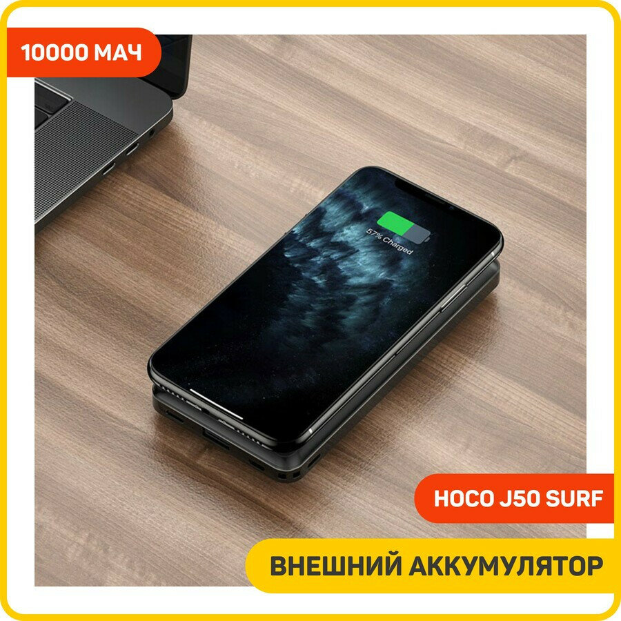 Внешний аккумулятор Powerbank HOCO J50 Surf, с беспроводной зарядкой, 2A, 10000 mAh, черный