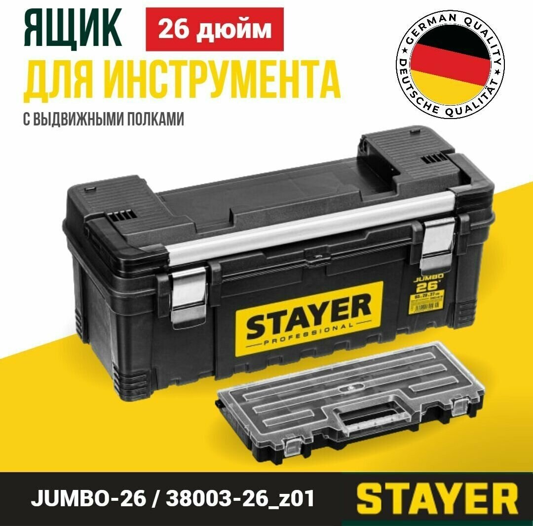 Ящик для инструмента "JUMBO-26" пластиковый, STAYER Professional, 38003-26_z01
