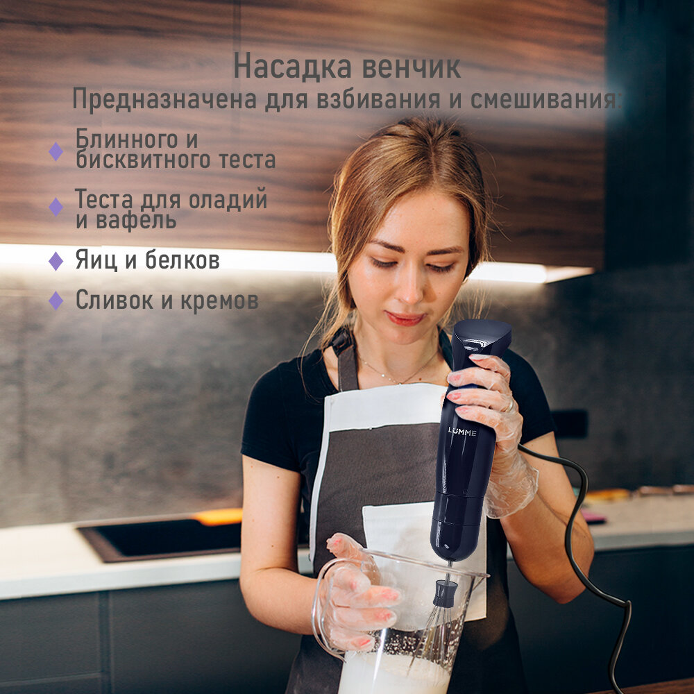 | Отзыв: | Погружной блендер LUMME LU-1886, удобный в использовании, нравится то что в нем, не только блендер, но и измельчитель, и насадка венчика. Мне как-раз то что нужно. |