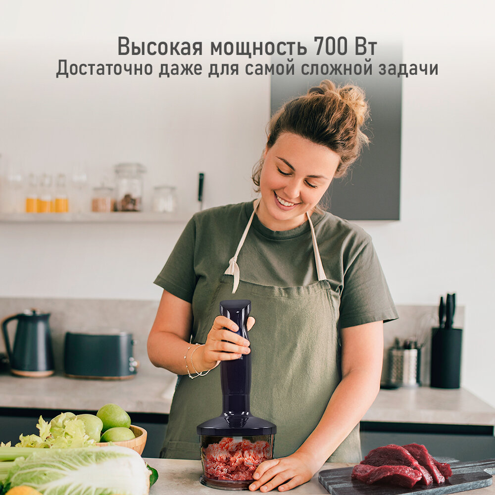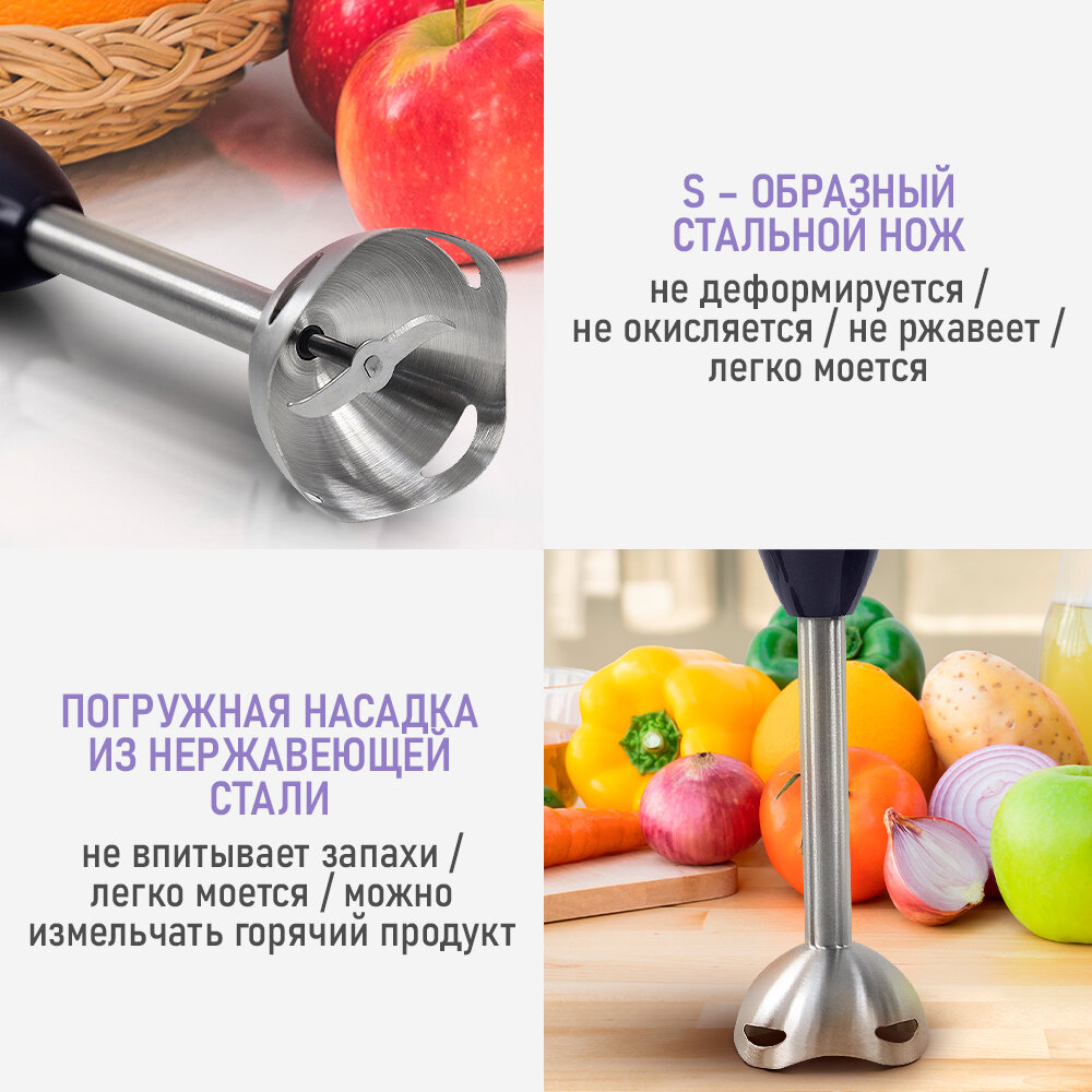 Погружной блендер 3 в 1, 2 скорости, мощность 800 Вт, небесно-голубой