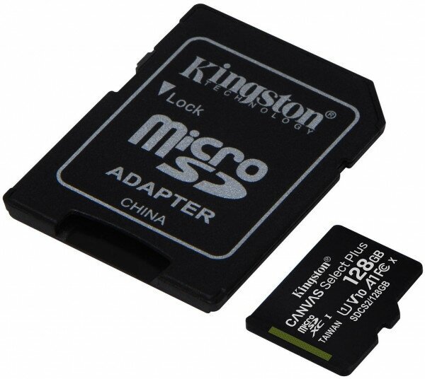 Карта памяти SDXC UHS-I U3 Kingston Canvas Select Plus 128 ГБ, 100 МБ/с, Class 10, SDS2/128GB, 1 шт., без адаптера