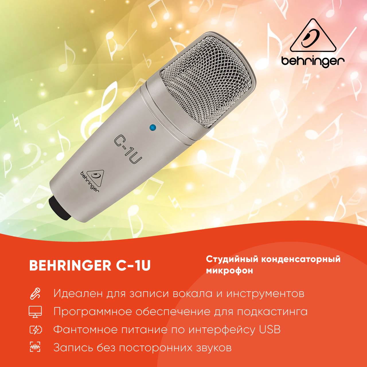 Купить BEHRINGER C-1U cтудийный конденсаторный микрофон (кардиоида) с USB выходом и комплектом программного обеспечения