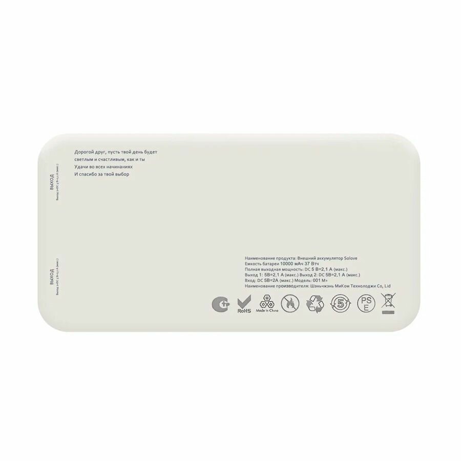 Внешний аккумулятор Solove 001M+ 10000мAч бежевый