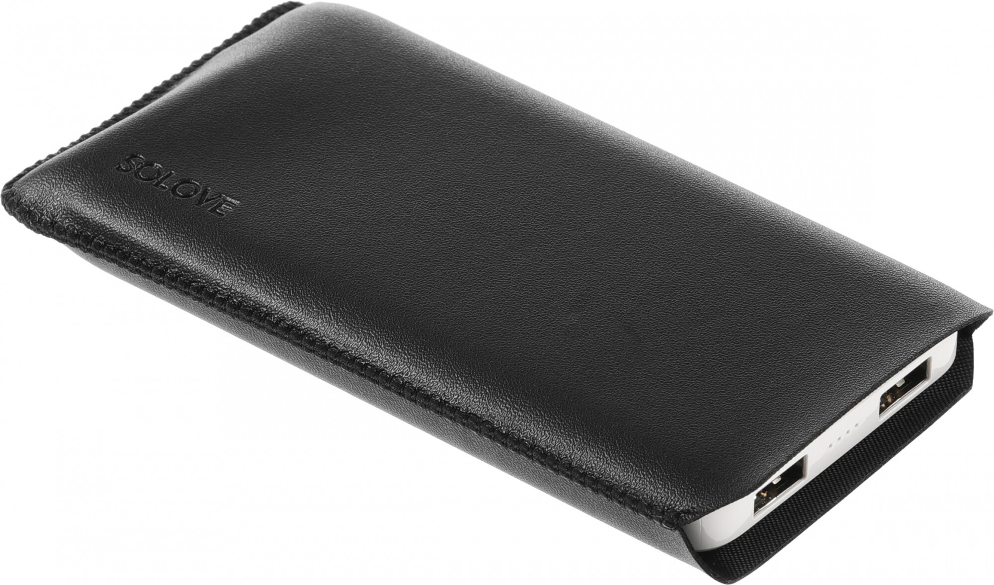 Внешний аккумулятор Power Bank SOLOVE 10000mAh Type-C с 2xUSB выходом, кожаный чехол (001M+ Black), черный