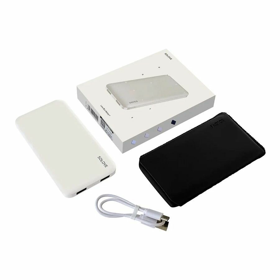 Внешний аккумулятор Power Bank SOLOVE 10000mAh Type-C с 2xUSB выходом, кожаный чехол (001M+ White RUS)