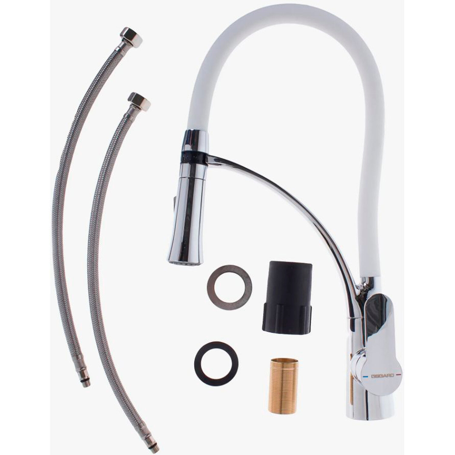 Купить Смеситель для кухни OSGARD SVANEN с гибким изливом в белой силиконовой оплетке 47173, белый/хром