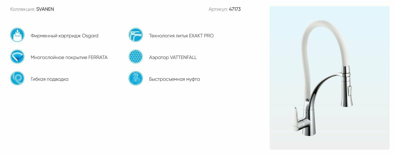 СохранитьСмеситель для кухни OSGARD SVANEN с гибким изливом в белой силиконовой оплетке 47173, белый/хром интересное: