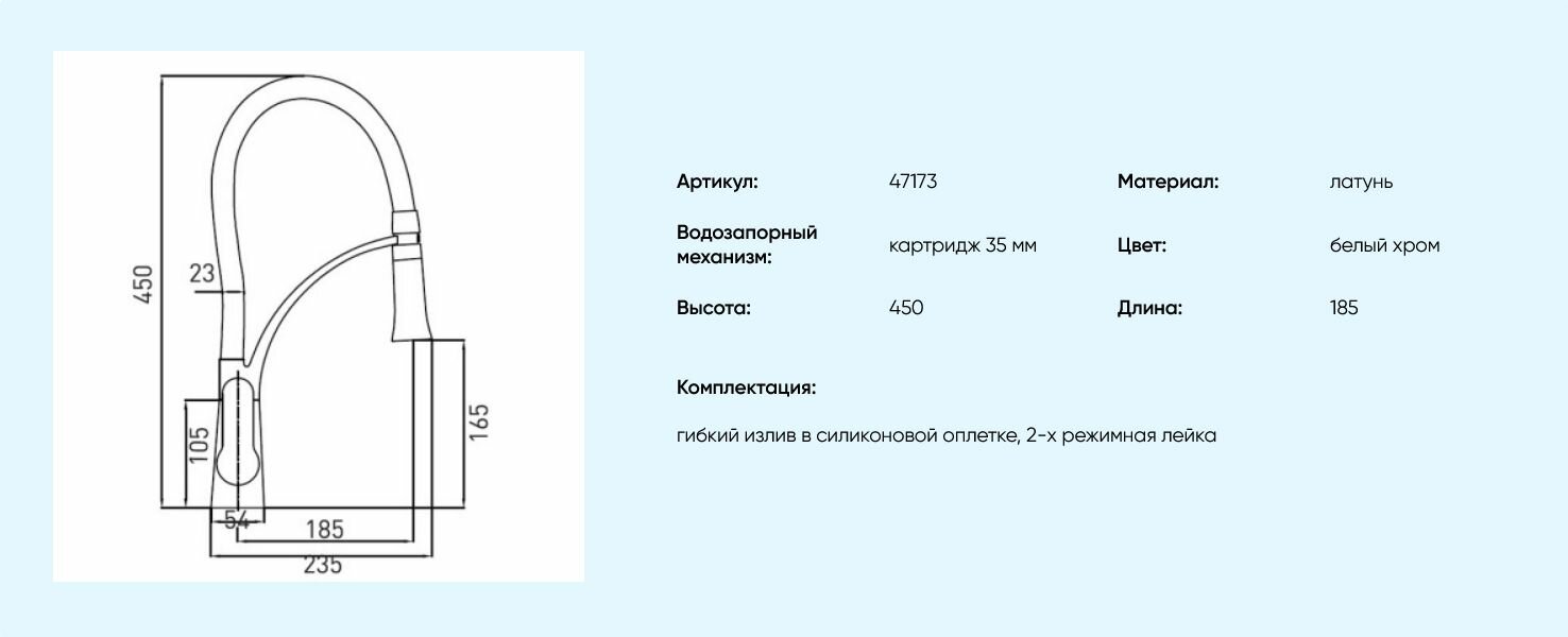 | Высота излива | 165 мм / 450 мм |