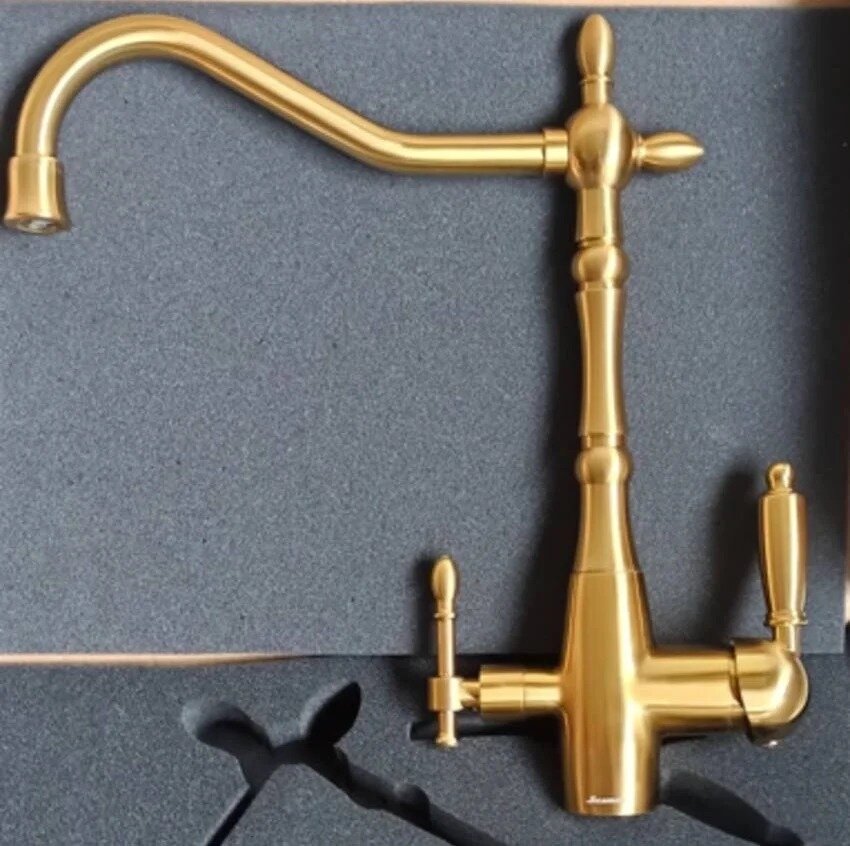Смеситель для кухни Seaman Barcelone SSL-5387-AG Antique Gold, античное золото бронза, под фильтр 2в1, ретро